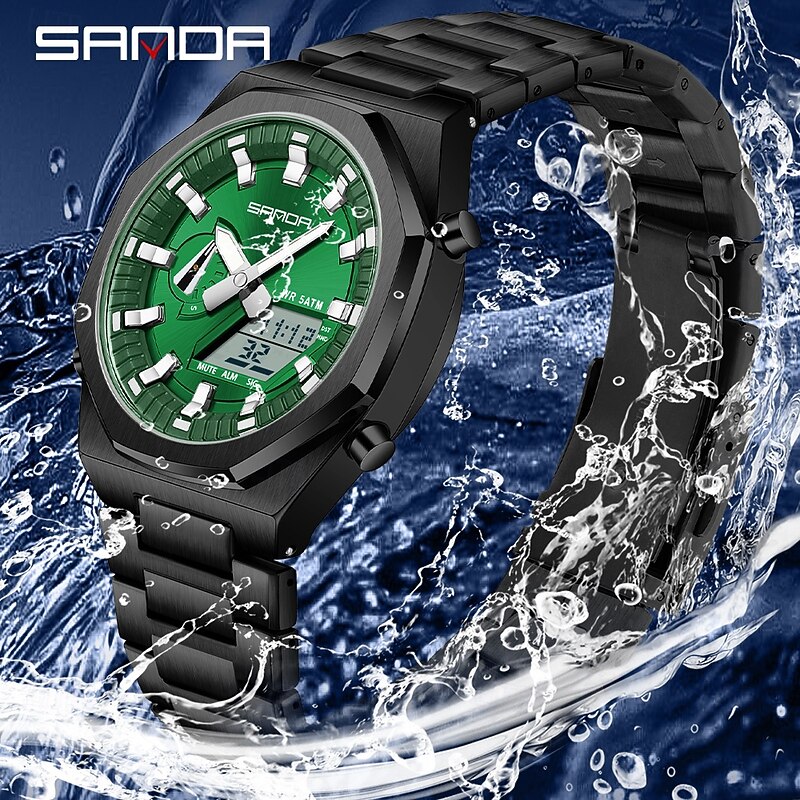 SANDA Women Men Digital Watch Large Dial Outdoor Sports Fashion Luminous Calendar Date Week Chronograph Stainless Steel Strap Watch 9