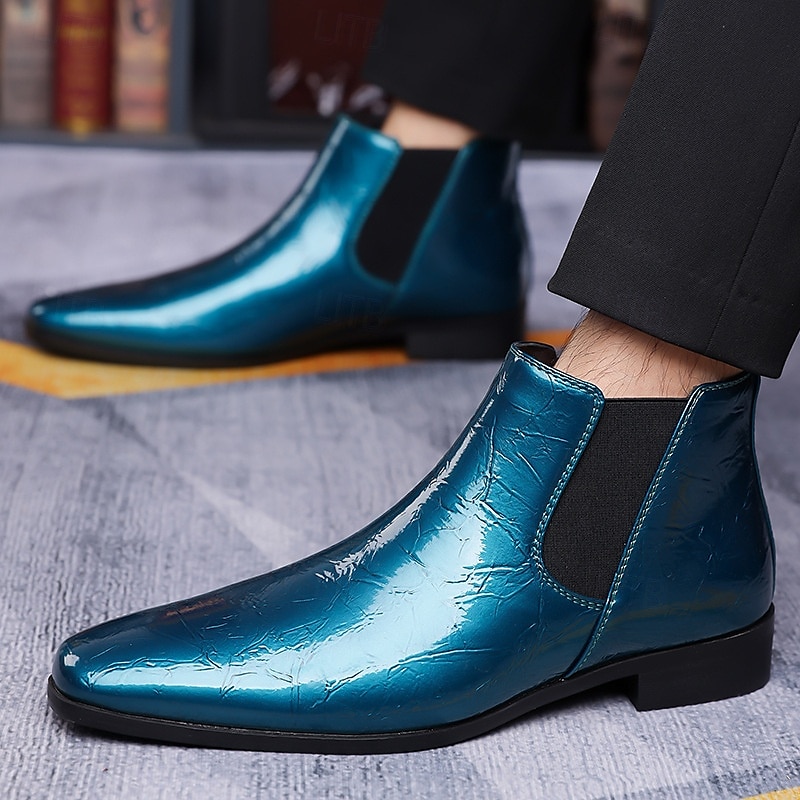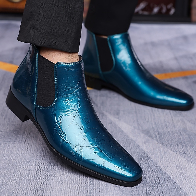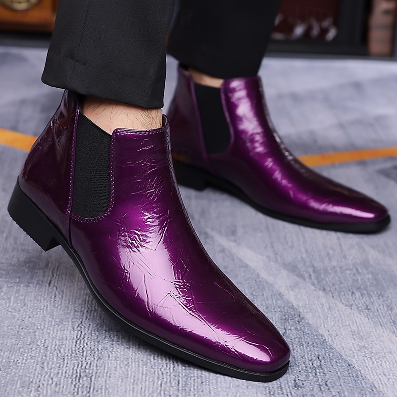 HOT ! Men's Purple Patent Faux Leather Chelsea Boots with Elastic Goring – Stylish Casual and Formal Footwear