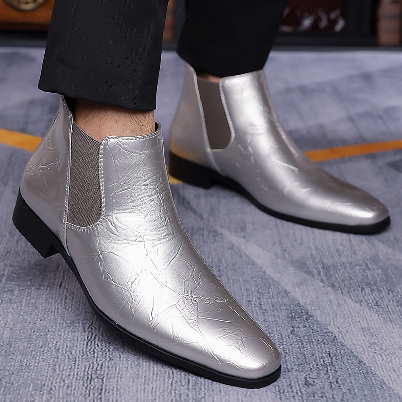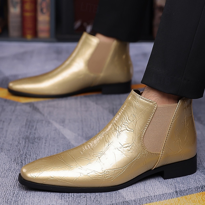 Highlights [Fabric]: Crafted from high-quality PU leather, these Chelsea boots offer a luxurious and glossy finish, providing an elegant yet durable option suitable for any occasion. The high-gloss surface adds a sophisticated touch to the deep purple color, ensuring a standout piece in any collection. [Style]: These ankle boots feature the classic Chelsea style, complete with elastic side panels for easy slip-on access. The pointed toe design contributes to a sleek and modern silhouette, perfect for both formal and casual ensembles. The sturdy low heel ensures comfort and style, making them an ideal choice for any fashion-forward individual. [Design Highlights]: The striking deep purple color and high-gloss finish make these boots a bold fashion statement. The elastic goring ensures a snug fit and seamless integration into the boots' sleek design, while the well-crafted sole provides slip resistance and durability for confident wear. [Occasions]: Perfect for both casual outings and formal events, these Chelsea boots enhance any outfit with their modern allure. Whether attending a stylish evening gathering or a casual weekend brunch, these boots make a striking accessory. [Size Range]: Available in a wide range of sizes, from US7 / EU39 / UK6 / CN39 to US12 / EU45 / UK11 / CN48, these boots cater to a variety of preferences, ensuring a perfect fit for many.