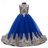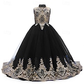More information about Flower Girl Dress Kid's Girls' Formal Gown Evening Dress Performance Wedding Party Elegant Beautiful Sequins Mesh Floral Sleeveless Standing Collar Wine Red Black 4 years+