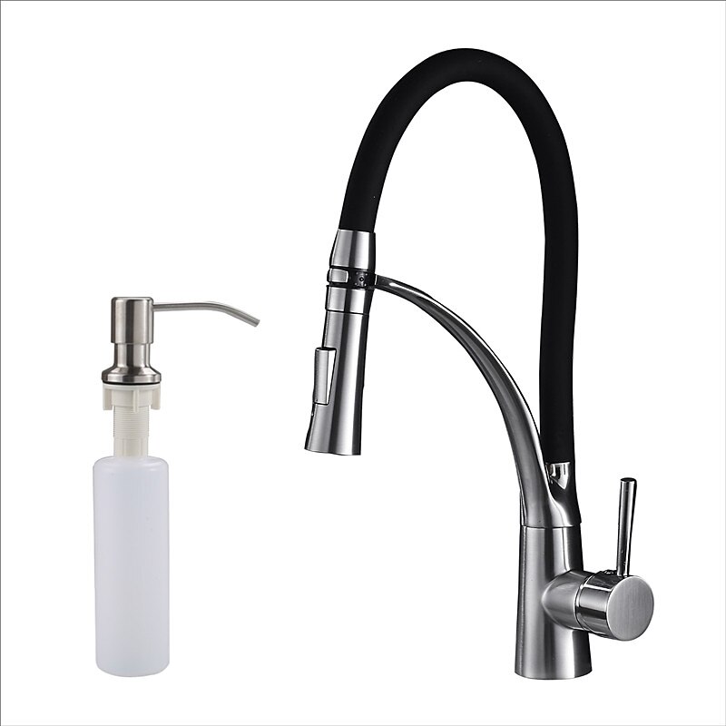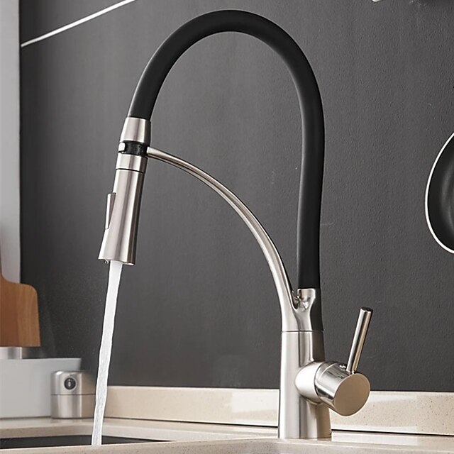 HOT ! Kitchen Faucet Set, Brush Nickel Single Handle One Hole Pull Out Centerset, Brass Kitchen Faucet with Supply Lines