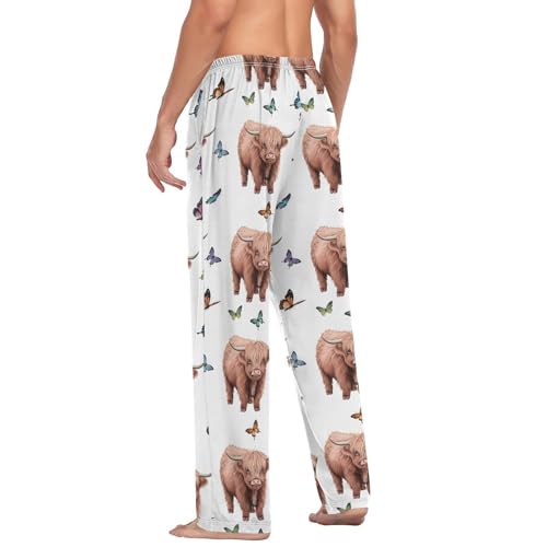 Men’s Highland Cows Butterflies Pajama Pants with Pockets, Comfortable Lounge Sleep Bottoms#793 1