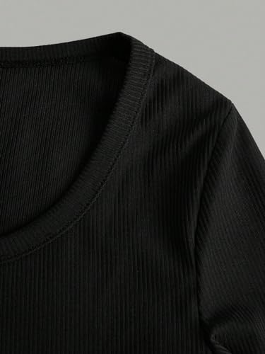 Girl's Long Sleeve T Shirt Slim Fit Crewneck Fall Basic Tees Ribbed Knit Crop Top for Girls 6