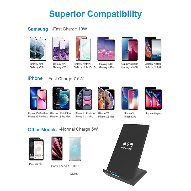 More information about 15W Fast Wireless Charger Qi Certified Wireless Charging Stand Compatible with iPhone 13/12/SE 2020/11/XS Max/XR/X Samsung Galaxy S22 S21 S20 S10 Note 20 and Qi Supported Phones