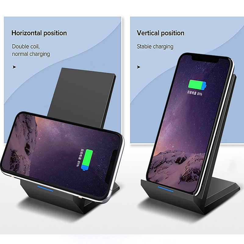 Highlights - The 2-coil fast charging feature makes this wireless charger 1.4 times faster than standard wireless chargers, providing a much wider charging area. - The ergonomic stand design allows for charging your phone vertically or horizontally, while still enjoying multimedia content without interruption. Plus, you can even answer calls without having to unplug. - This wireless charger has two charging modes: a 10W fast charge mode and a 7.5W fast charge mode for compatible phones, as well as a 5W standard charge mode for QI-enabled devices like Pixel 3/3XL and Samsung S6/S6Edge. - The charger features safe charging protection with overcharging and over-temperature protection, ensuring that the battery life is prolonged and it doesn't waste energy. It also has anti-slip rubber feet to ensure stability. - The intelligent LED indicator shows the charging status using multi-colored LED lights with a blue LED for standby mode and green for charging mode. Additionally, it has a one-year warranty in case of any issues.