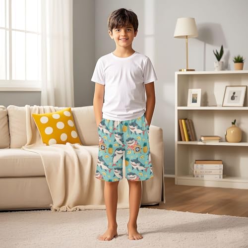 ALAZA Cartoon Shark Pineapple Fruit Pajama Shorts Sleep Shorts Pant Lounge Pajama Bottoms Elastic Waist with Pockets 1