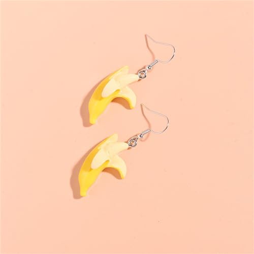 coadipress Fruit Banana Dangle Earrings for Women Fashion Cute Lifelike Resin Peeled Fruits Banana Funny Earrings Bohemian Colorful Yellow Banana Food Earring 7