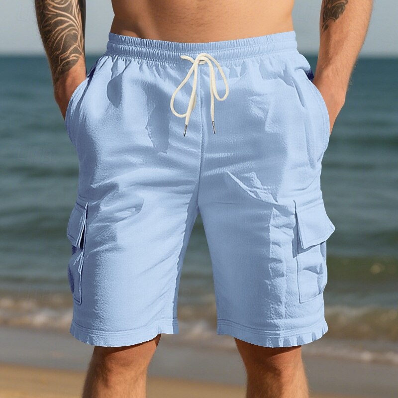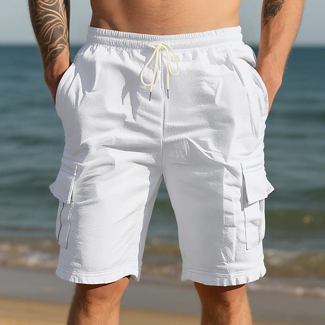 $17.99 - Men's Cotton Linen Shorts Cargo Shorts Shorts Summer Shorts Drawstring Elastic Waist Multi Pocket Plain Comfort Wearable Knee Length Outdoor Sport Daily Fashion Casual Black White 2025. Shop for cheap Holiday online? Buy at lightinthebox.com on sale today!
