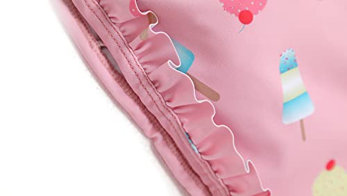 • DESIGN: Long sleeves ruffle edge top and leggings type pants for sun protection. Cute ice-cream pattern rashguard with swim cap, 3-piece set.