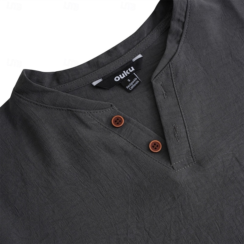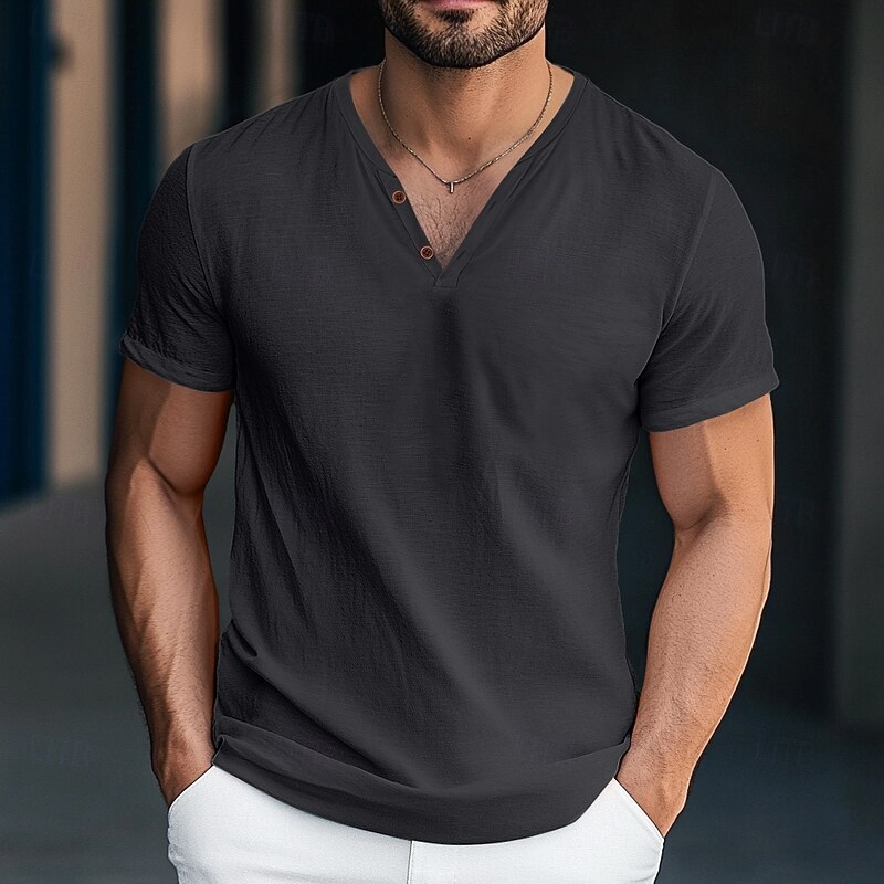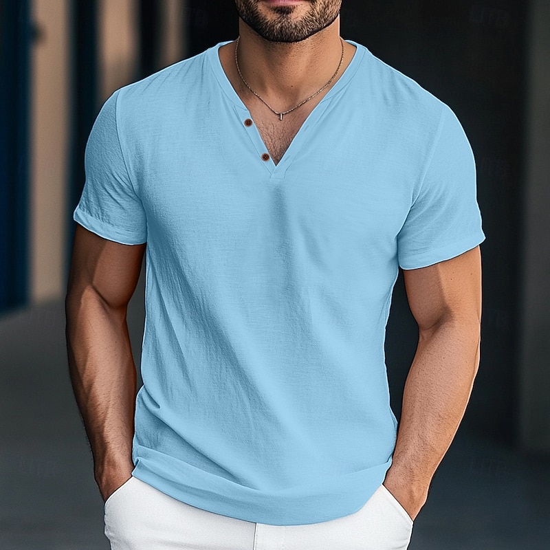 More information about Men's Henley Shirt Tee Top Short Sleeve Solid Color Plain Fashion Designer Basic Buttons V Neck Vacation Street Casual Summer Dark Gray White Blue Henley T-Shirt