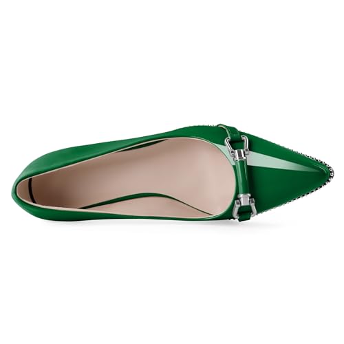 Women Green Kitten Pumps Low Heel Pointed Toe Shoes Ladies Trendy Classic Beaded Dressy Shoes for Event Party Green Patent Leather US Size 8.5 6