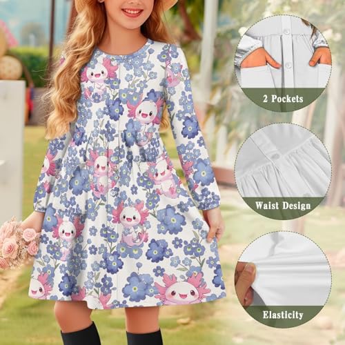 • Soft and Comfortable Girls' Long Sleeve Dress: Made of breathable polyester, the fabric is lightweight and stretchy, with a casual loose fit and retractable cuffs to ensure maximum comfort and a pleasant wearing experience