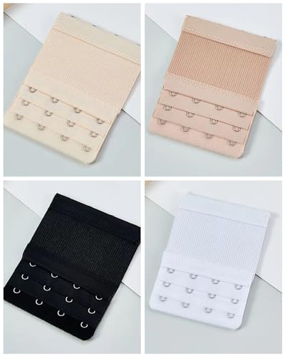• [Package Contents]You will receive 4 pieces of 4 Hooks 3 Rows stretchy bra extenders,contain different color,black,beige,white,skin color,enough quantity and colors to match your needs of daily use.