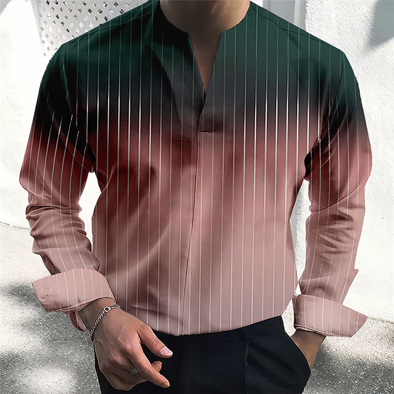 More information about Men's Shirt Dress Shirt Gradient Outdoor Casual Pink Blue Green Khaki Long Sleeve V Neck Summer Fall Clothing Apparel Print