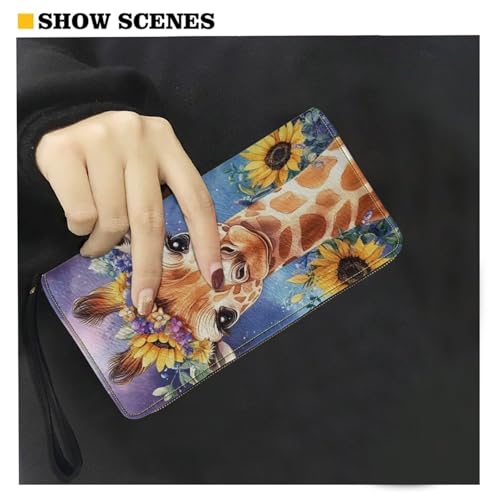 HOT ! Galaxy Giraffe Floral Long Wristlet Wallet for Women Zipper Phone Cards Holder Clutch Purse Organizer