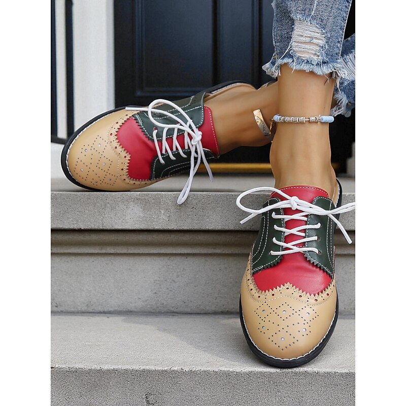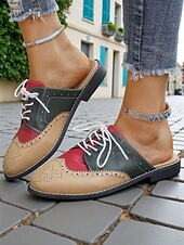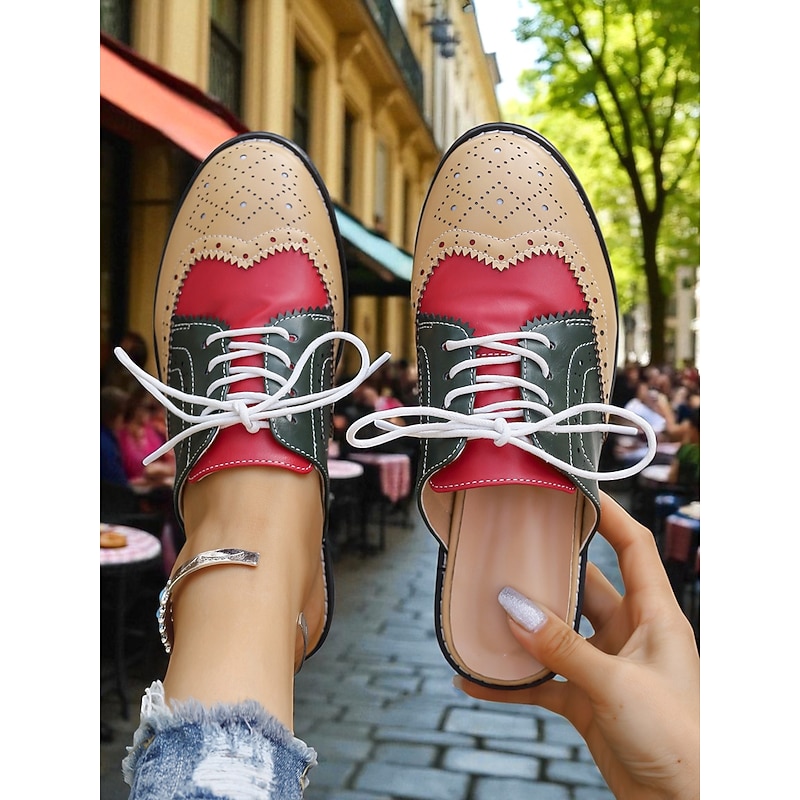 More information about Women's 1950s Vintage Colorblock Wingtip Mule Oxford Shoes - Yellow Blue Slip-On Lace-Up Flats for Casual Street Style, Outings and Weekend Travel