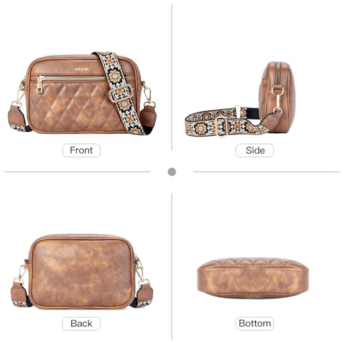 HOT ! Telena Crossbody bags for Women Trendy Quilted Crossbody Bag Faux Leather Purse with Wide Strap