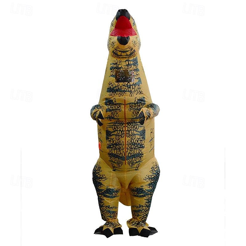 Highlights [Product Title] : New Tyrannosaurus Inflatable Costume for Halloween Cosplay [Fabric] : Crafted from lightweight, durable polyester fabric, this inflatable costume offers comfort and resilience, allowing for easy wear throughout various events. [Fit] : Designed to resemble a classic, towering dinosaur, the costume provides a comfortable fit for both kids and adults. Its inflatable nature ensures flexibility and mobility. [Design Highlights] : This costume stands out with its vibrant earthy tones—green, brown, and beige—with intricate patterns that mimic scales and spikes. Key features include a long tail, prominent back spikes, and short arms, capturing the essence of a prehistoric dinosaur. The built-in fan, powered by batteries, keeps the costume inflated for ease of movement and striking visual impact. [Occasions] : Perfect for Halloween, carnivals, masquerades, or any costume event, this Tyrannosaurus costume promises a fun and memorable experience, making you the center of attention at any gathering or party. [Size] : Available in various sizes, including S and M, ensuring a suitable choice for both kids and adults looking to embody their favorite dinosaur character.