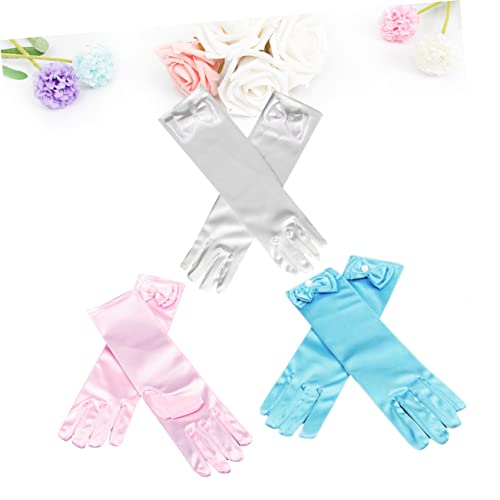 CLISPEED 1set Satin Dress up Gloves for Girls White Light for Weddings Ballet Parties and Photography Props 3