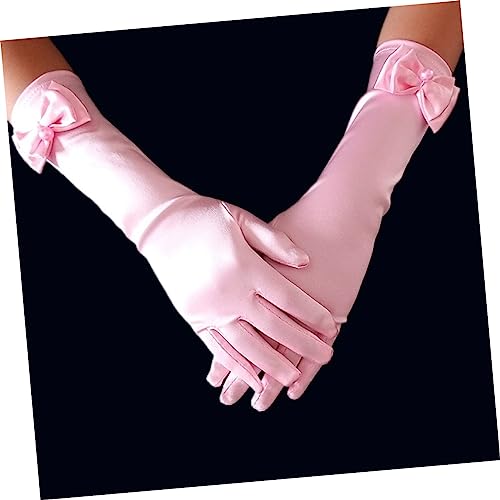 CLISPEED 1set Satin Dress up Gloves for Girls White Light for Weddings Ballet Parties and Photography Props 5