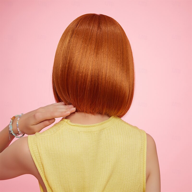 Why Choose Synthetic Wig Uniforms Career Costumes Princess Straight kinky Straight Middle Part Layered Haircut Machine Made Wig 14 inch Orange Synthetic Hair Women's Cosplay Party Fashion Orange?