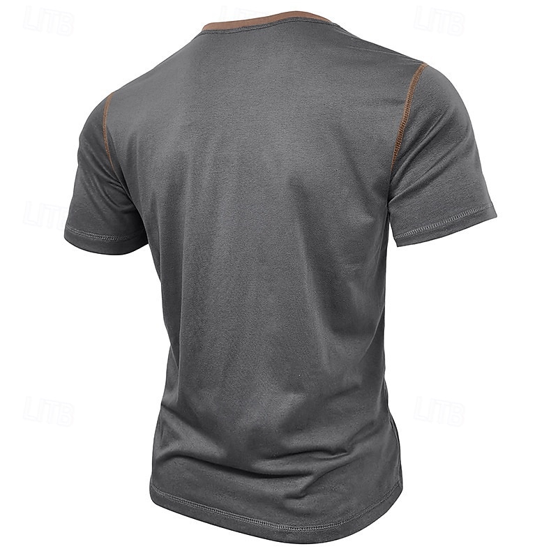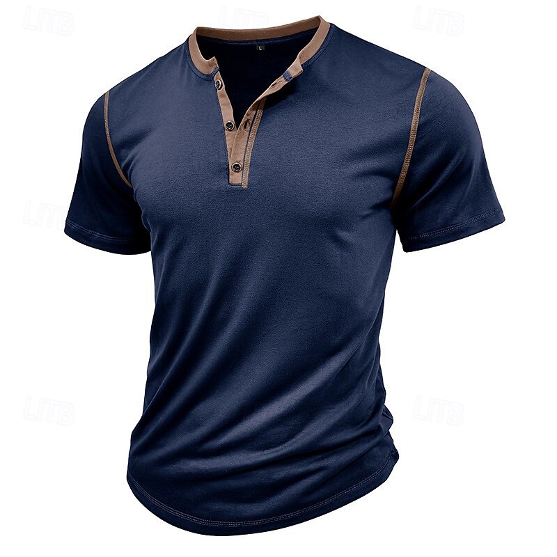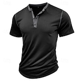More information about Men's T Shirt Henley Shirt Tee Short Sleeve Shirt Short Sleeve Henley Spring & Summer Color Block Fashion Designer Basic Patchwork Vacation Street Going out Wine Black White Top Tee for Men
