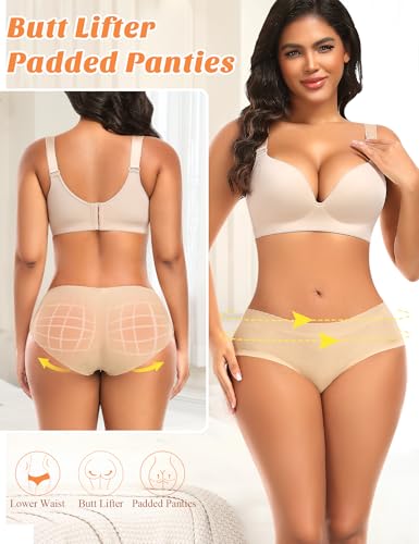 • 【Butt Lifter Padded Underwear】This butt enhancer panties help define the buttocks and smooth body for a more natural, sleek and slim look, minimizing those unsightly bulges. The low-waist design prevents the waistband of the padded panties from showing, perfectly fits the hips and adds dimension, give you a charming hourglass figure.