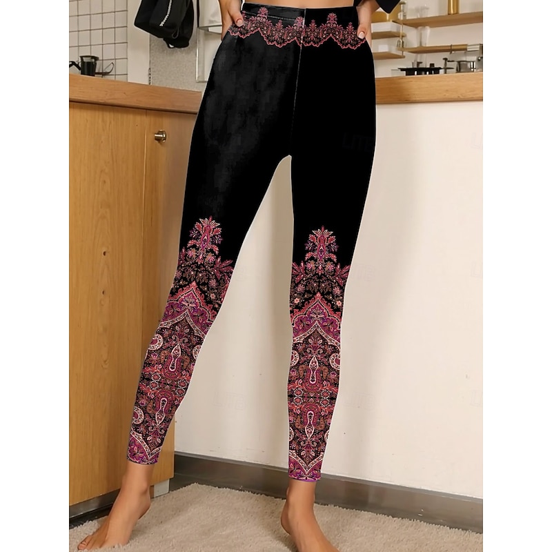 More information about Women's Leggings Vacation Vintage Fashion Ankle-Length High Waist Graphic Geometric Pattern Printing Soft Breathable Stretchy Vacation Casual Daily Violet Robin's Egg Blue Golden Pink Spring Slim Fit