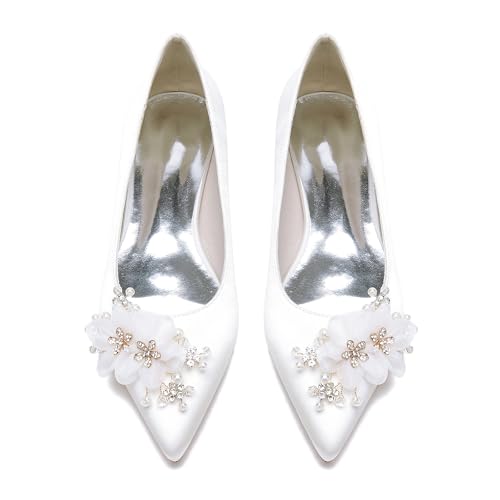 More information about Women Closed Toe Flat Wedding Shoes Satin with Crystal Lace Flower Pointed Toe Party Bridal Shoes Low Heel Ballet Flats Slip-on