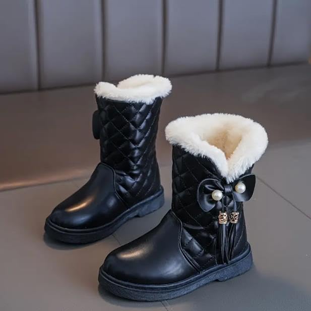 More information about Girls' Winter Boots Thick Warm Snow Boots for Kids, Princess Style Mid-Calf Boots with Bowknot and Tassel, Faux Leather, Fabric Lining, Rubber Sole, Round Toe, Slip-On Closure