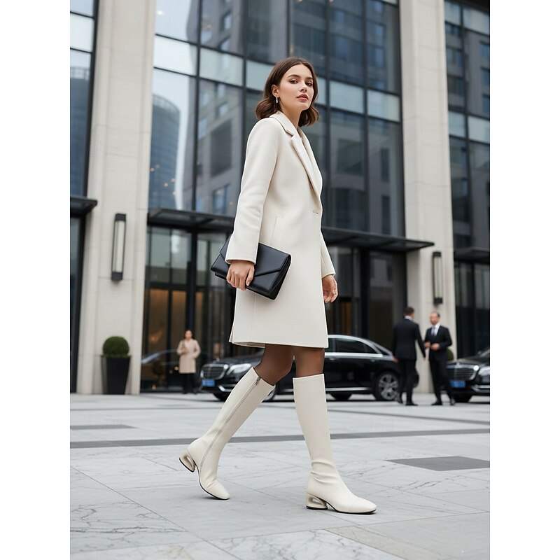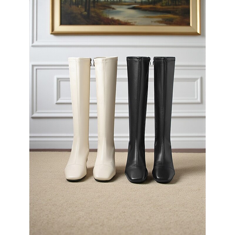 Women's Stretch Knee-High Boots with Unique Shaped Heels and Minimalist Design, Chic Urban Fashion Footwear 18