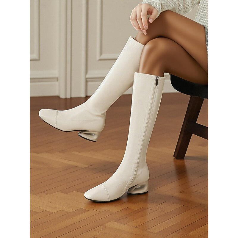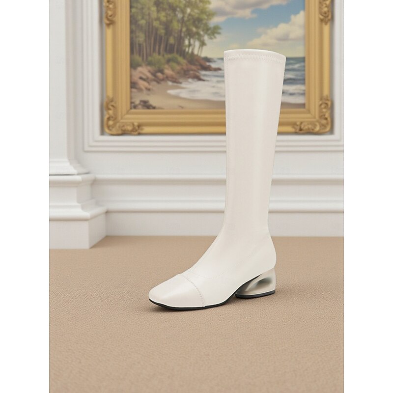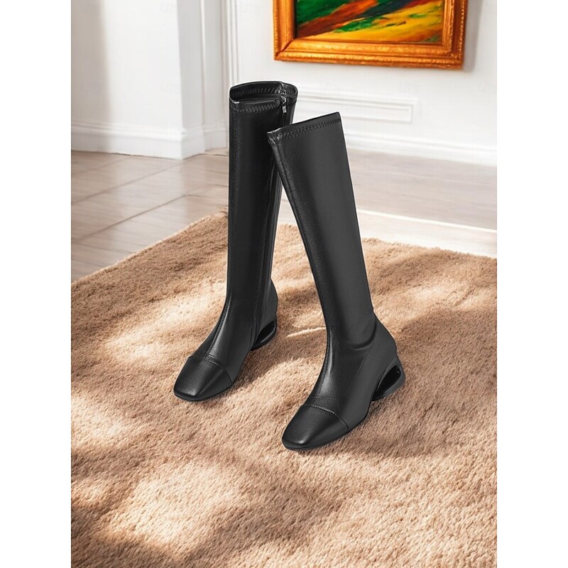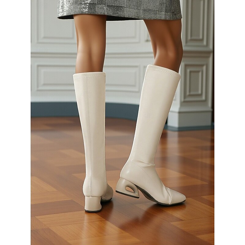 Women's Stretch Knee-High Boots with Unique Shaped Heels and Minimalist Design, Chic Urban Fashion Footwear 9