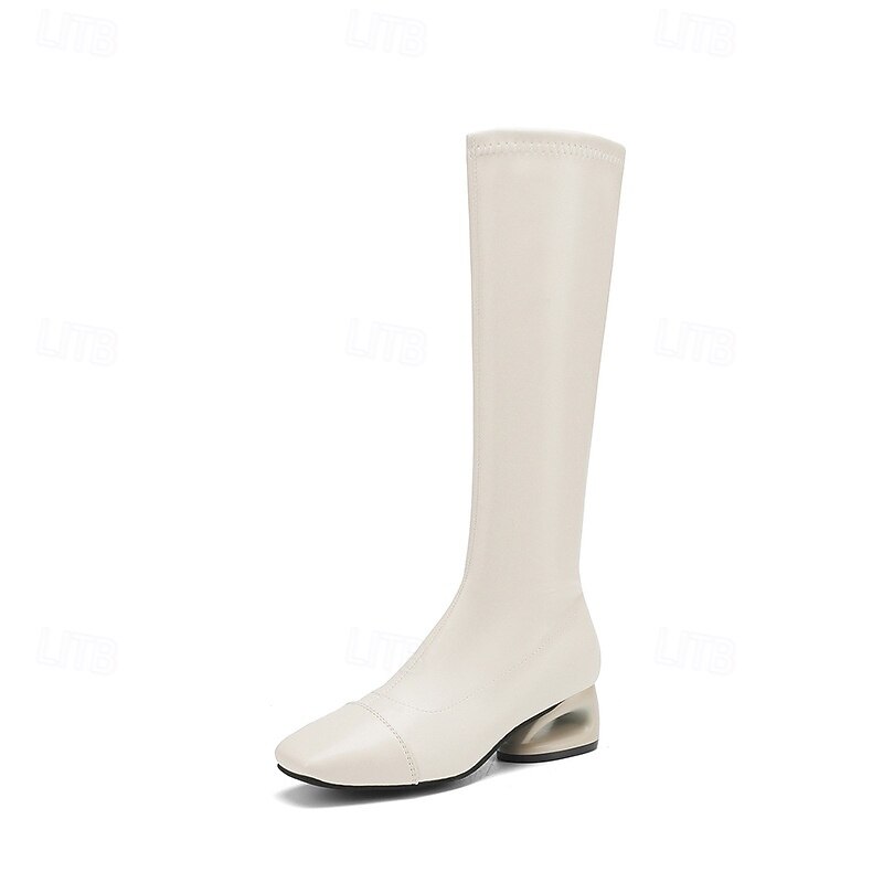 More information about Women's Stretch Knee-High Boots with Unique Shaped Heels and Minimalist Design, Chic Urban Fashion Footwear