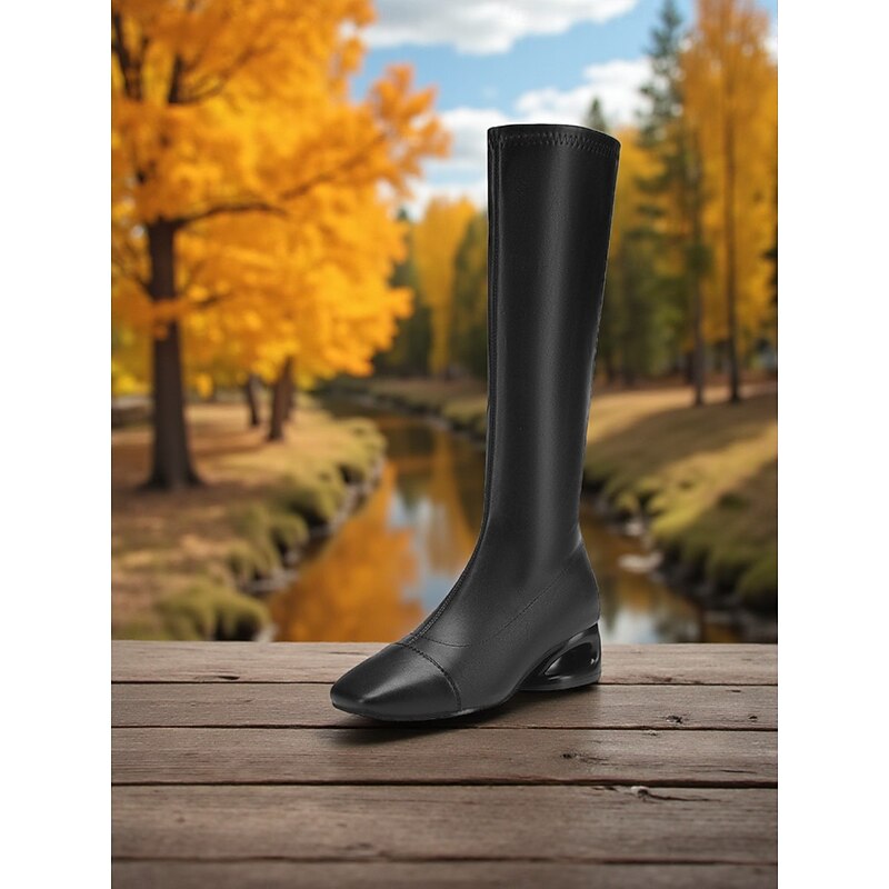 Women's Stretch Knee-High Boots with Unique Shaped Heels and Minimalist Design, Chic Urban Fashion Footwear 20