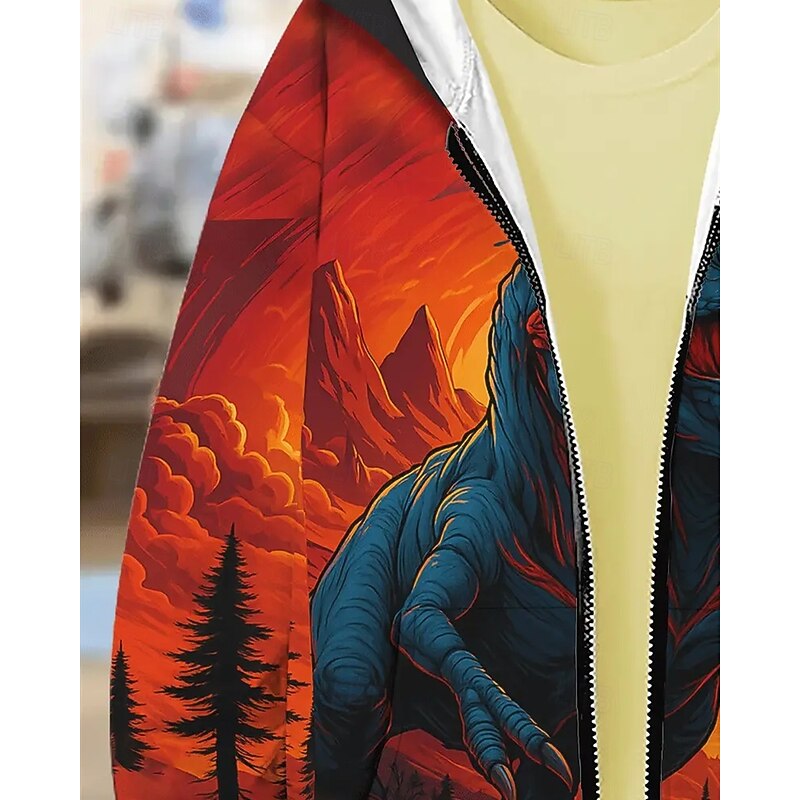 HOT ! Girls' 3D Dinosaur Hoodie Coat Outerwear Long Sleeve Spring Fall Cool Sport Kids 4-12 Years Zip Street Daily Regular Fit