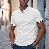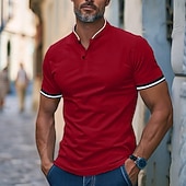 More information about Men's Polo Shirt Collarless Golf Shirts Casual Holiday Stand Collar Banded Collar Short Sleeve Fashion Basic Plain Button Summer Regular Fit Retro Red Black White Brown Polo Shirt
