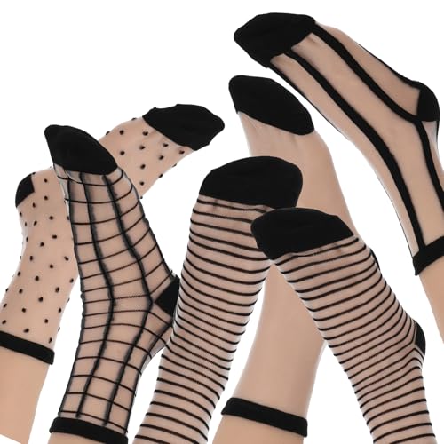 HOT ! 5 Pairs Sheer Socks, Black Mesh Ankle Socks, Ultra-Thin See Through Socks, Checkered Dot Striped Plaid Ankle, Thin Fishnet See Through Socks, Summer Casual Crew Socks