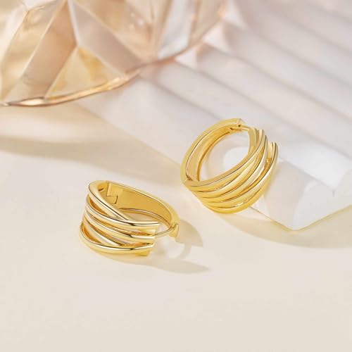 HOT ! 14K Gold Earrings for Women Gold Hoop Earrings for Women Trendy with Intertwined Lines Blends Art and Elegance Chunky Hoop Earring Womens Statement Earring 20mm