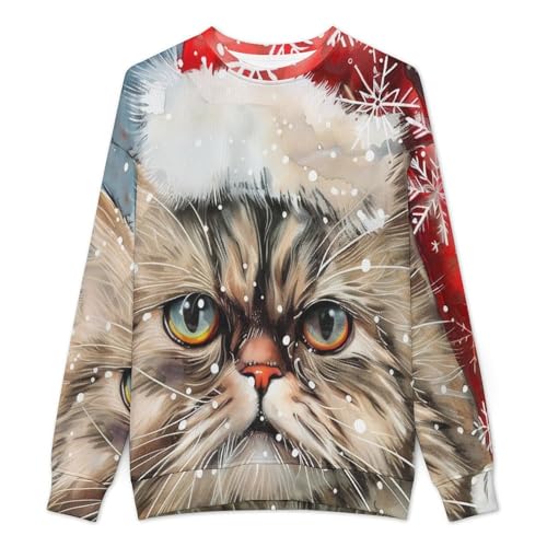 HOT ! Mens Crewneck Sweater Christmas Persian Cat Snowflakes Crew Neck Sweater for Men Casual Party Holiday Pullover