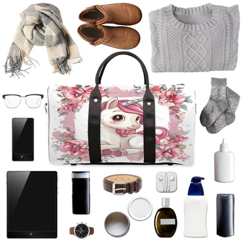 HOT ! Cute Unicorn Floral Travel Duffle Bag, Sports Gym Bags for Women Men, Carry On Weekender Overnight Workout Airplane Trips Bag