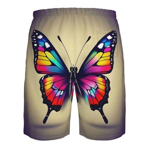 HOT ! Colorful Butterfly Print Mens Casual Shorts Drawstring Summer Beach Stretch Shorts Novelty Swimtrunks