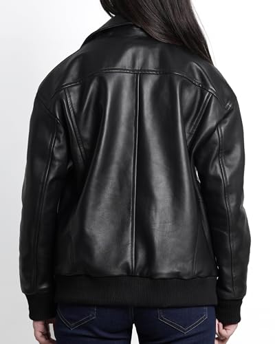 • STYLE: Black leather jacket women oversized feature button closure, multiple external pockets, and inside mobile pocket.