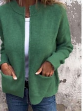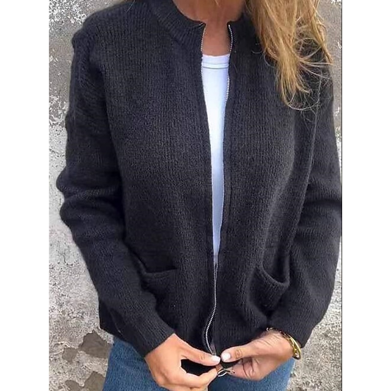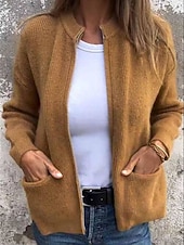 More information about Women's Sweater Cardigan Elegant Fashion Streetwear Pure Color Stand Collar Zipper Knitted Long Sleeve Regular Tops Knit Outdoor Daily Weekend Black Yellow Fall Winter
