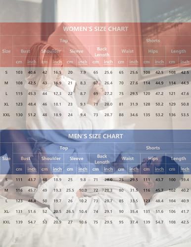 • Soft Fabric:This set of couple pajamas is made of breathable, skin-friendly soft fabric - Satin (95% Polyester, 5% Spandex), allowing you and your family to enjoy a moment of relaxation.