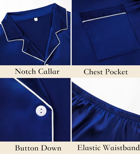 Couples Matching Pajamas Set Silk Satin Short Sleeve Button Down Loungewear with Long Pant 4