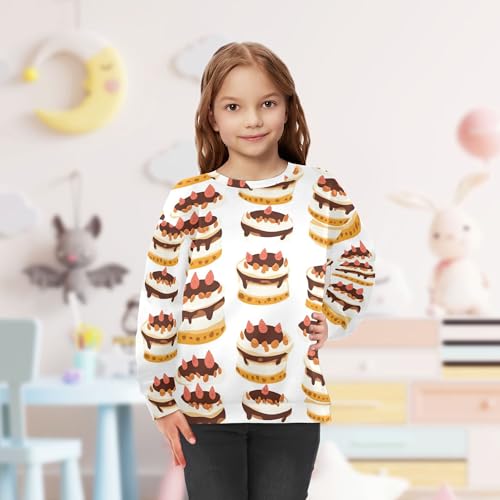 JUNZAN Cute Cartoon Strawberry Cakes Kids Boys Sweatshirts Hoodies Long Sleeve Outerwear for Kids Camping 4T 4