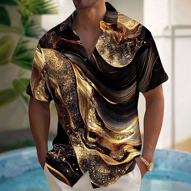 HOT ! Men's Luxury Abstract Marble Shirt Button Up Shirt Short Sleeve Fashion Casual Vacation Holiday Streetwear Summer Spring Turndown 3D Print Collared Shirts Black White Blue Purple Green