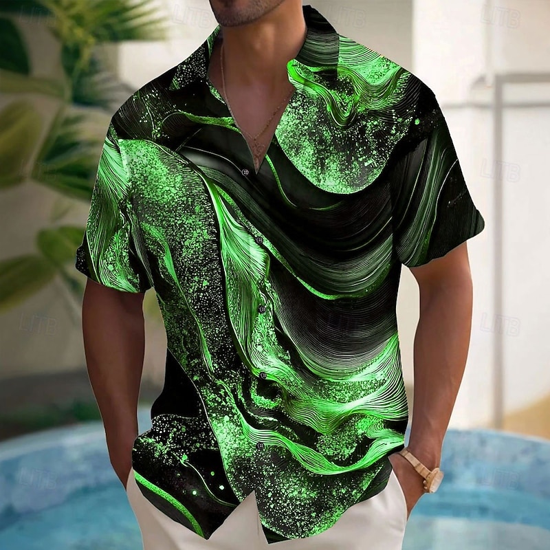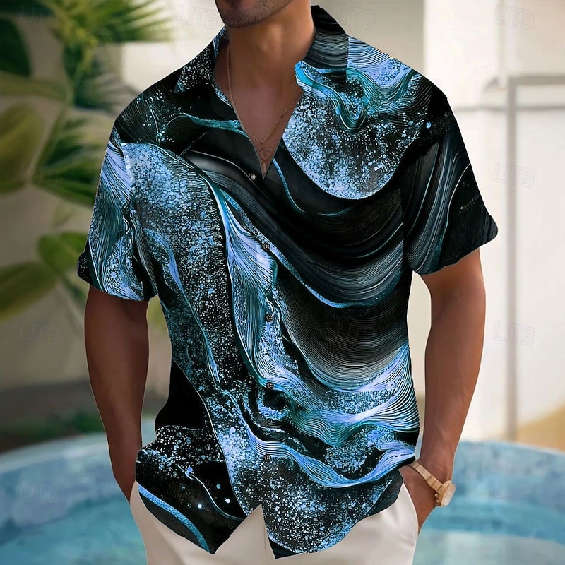More information about Men's Luxury Abstract Marble Shirt Button Up Shirt Short Sleeve Fashion Casual Vacation Holiday Streetwear Summer Spring Turndown 3D Print Collared Shirts Black White Blue Purple Green