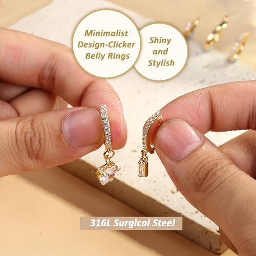 HOT ! FIBO STEEL 14K Gold Plated Belly Button Ring for Women 316L Surgical Steel Dangle Belly Button Ring Pink Heart Navel Rings Barbell CZ Clicker Belly Piercings Jewelry Dangly 14G