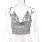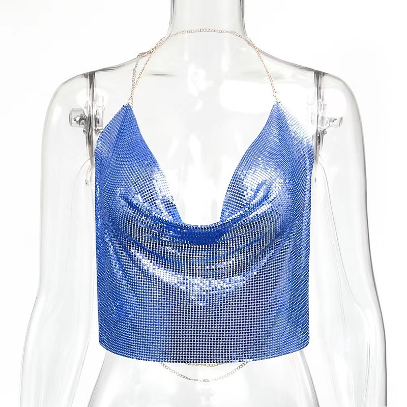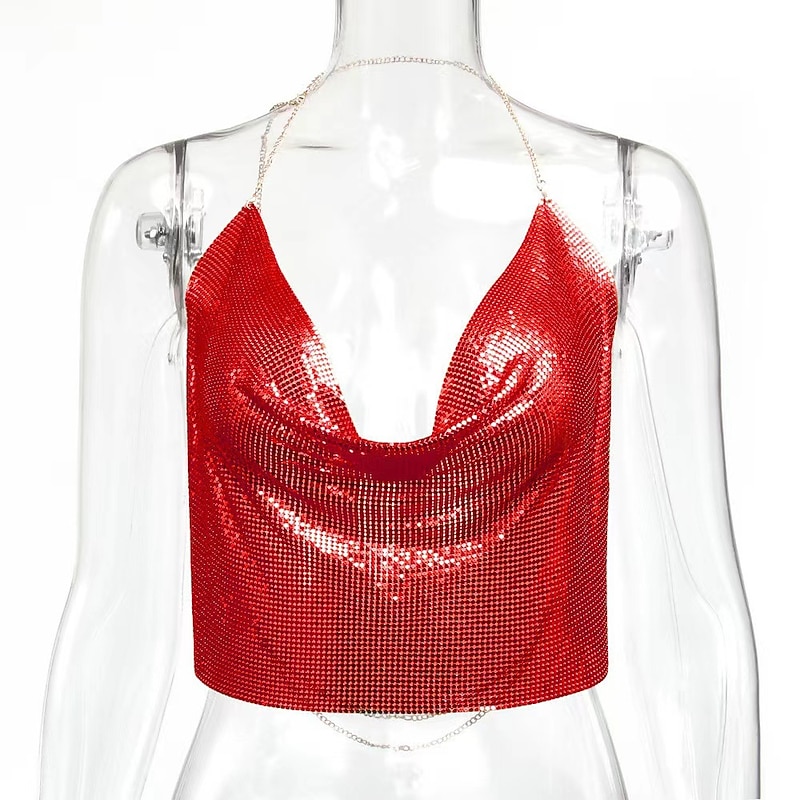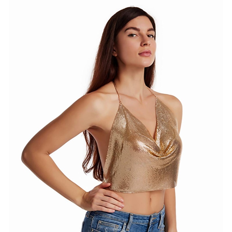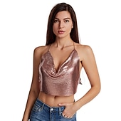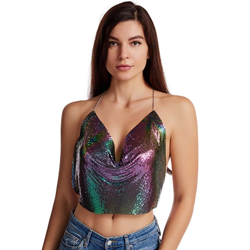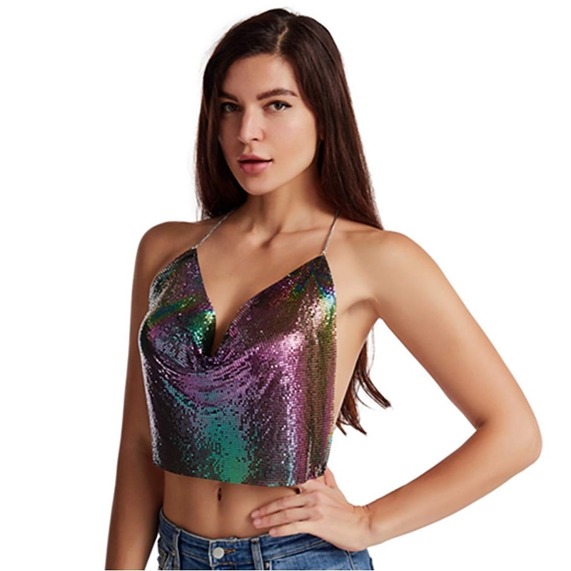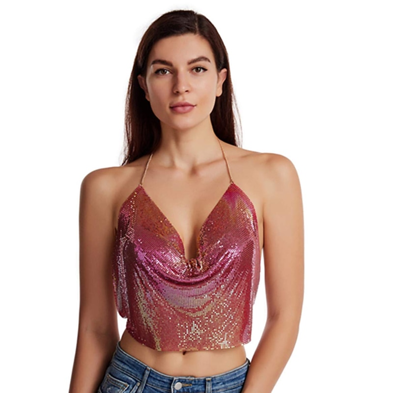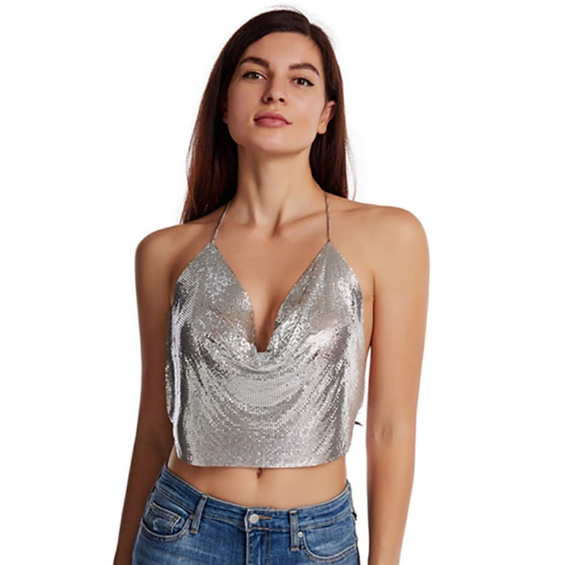 $27.99 - Women Metal Sequin Sparkle Glitter Tank Deep V Neck Spaghetti Strap Backless Chain Halter Crop Tops Party Blouse 1980s Disco Party Club 2025. Shop for cheap Sexy Costumes online? Buy at lightinthebox.com on sale today!